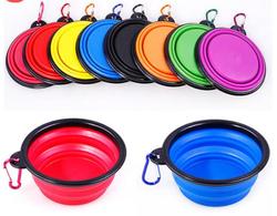 Açık gıda ve su için karabina ile taşınabilir silikon Pet seyahat besleme kasesi karışık renkler ile katlanabilir