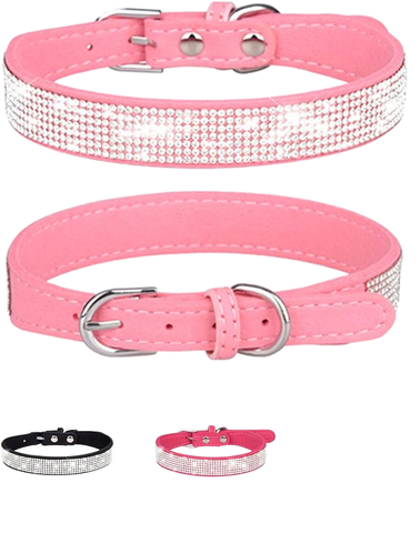 Collier de chien en cuir PU avec strass avec boucle en métal D anneau réglable collier de dressage de chien ceinture pour approvisionnement de chat
